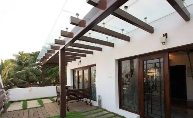 Mãu mái kính trước nhà, kính cường lực đẹp ( Mẫu 4 )