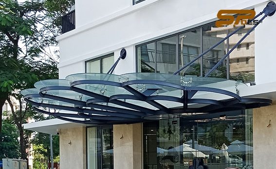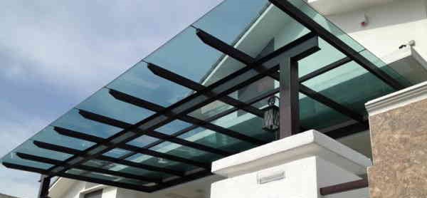 Mãu mái kính trước nhà, kính cường lực đẹp hiện đại ( Mẫu 24 )
