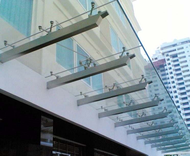 • Mái kính sử dụng cáp treo và dây treo kính prider.