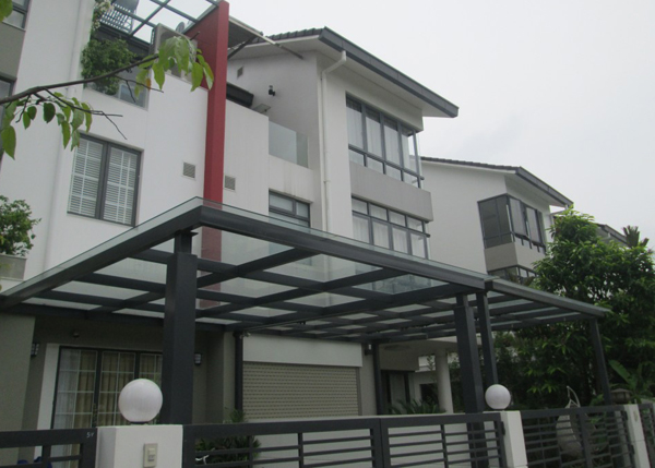 Mãu mái kính trước nhà ,kính cường lực bề đẹp ( Mẫu 7 )
